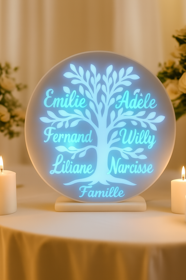 Illuminez vos moments précieux avec notre Arbre de Vie lumineux personnalisé, un cadre décoratif unique réalisé en impression 3D.
